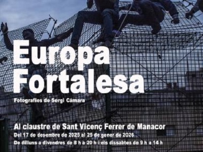L’Ajuntament de Manacor impulsa l’exposició “Europa Fortalesa” per promoure la reflexió crítica sobre les migracions. El Claustre de Sant Vicenç Ferrer acollirà aquest dijous 18 de desembre a les 18 h una visita guiada a l’exposició Europa Fortalesa, del fotoperiodista i documentalista Sergi Cámara. La iniciativa, organitzada per l’Ajuntament de Manacor, s’adreça especialment al públic jove i té com a objectiu apropar la realitat de les migracions contemporànies i fomentar la reflexió sobre els drets humans a les fronteres europees. L'exposició es podrà visitar del 17 de desembre al 25 de gener al Claustre de Sant Vicenç Ferrer, de dilluns a divendres de 8 h a 20 h i els dissabtes de 9 h a 14 h.